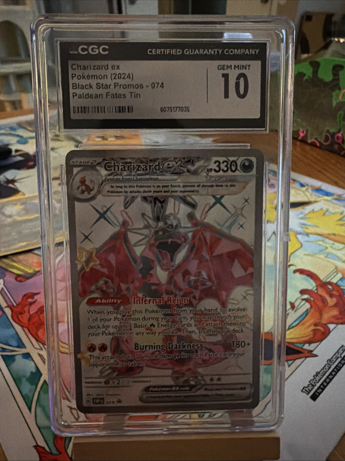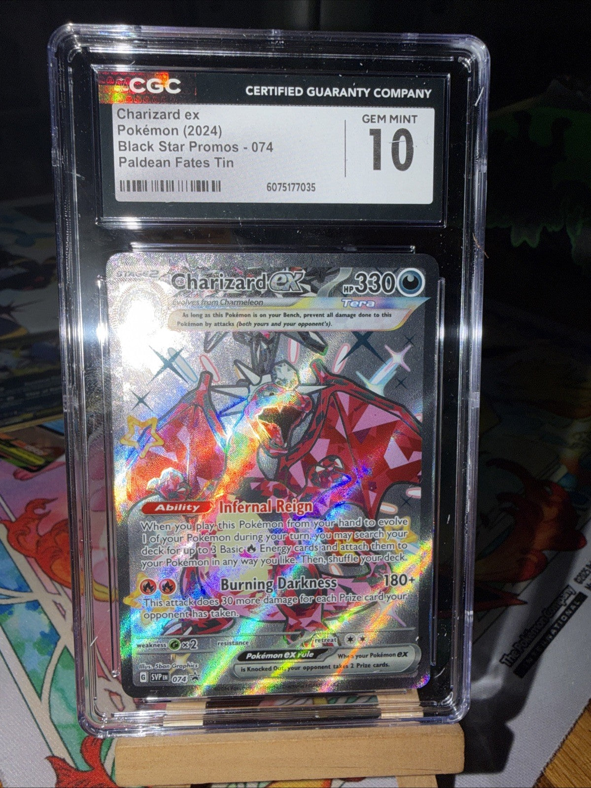 Regular price $80.00The Charizard ex 074 Sv: Scarlet & Violet Holo CGC 10 from the Pokémon TCG is a highly sought-after collectible card featuring the iconic character Charizard. This special edition card, part of the Scarlet & Violet set, boasts a stunning holo finish and boasts a rarity level of promo. With a high HP of 330 and illustrated by 5ban Graphics, this English-language card is a must-have for any Pokémon card collector looking to add a unique and valuable piece to their collection.